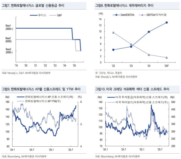 NH투자증권은 15일 한화토탈에너지스의 무디스 신용등급 강등을 두고 업황 부진이 계속되는 가운데 연말까지 예정된 사업재편계획의 실행 여부가 향후 등급과 스프레드 방향을 좌우할 것으로 전망했다.