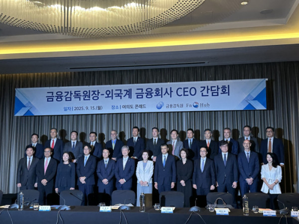 15일 금융감독원에 따르면 이 원장은 이날 서울 여의도 콘래드호텔에서 외국계 은행·보험·증권·자산운용사 등 25개 금융회사 CEO와 간담회를 열고 금융현안과 의견을 청취했다. 이번 간담회에는 금융감독원 권역별 감독국장 등 8명이 참석했으며, 은행 10곳, 생명보험사 3곳, 손해보험사 3곳, 증권사 6곳, 자산운용사 3곳의 대표가 자리했다.