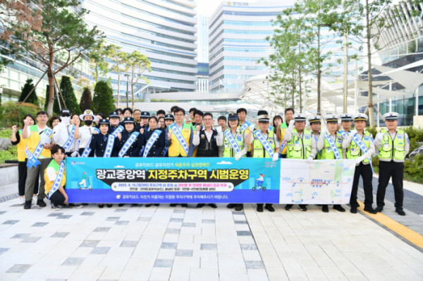 시는 15일 오전 광교중앙역 일원에서 ‘공유자전거·킥보드 지정주차구역 시범운영 홍보 캠페인’을 열고, 시민인식 제고와 질서 정착을 위한 현장 활동을 펼쳤다.