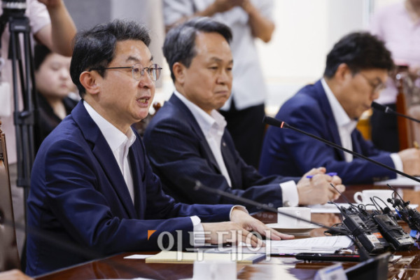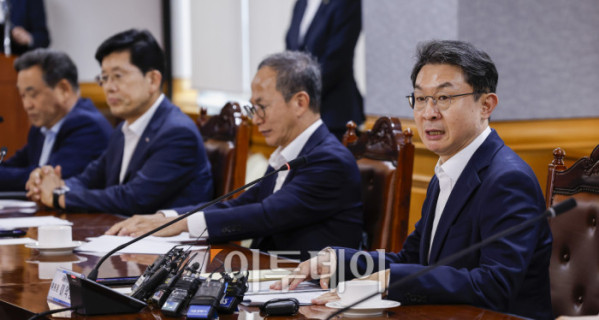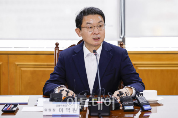 ▲이억원 금융위원회 위원장이 15일 서울 중구 은행연합회에서 열린 금융위원장-금융지주 회장 간담회에서 모두발언을 하고 있다. 조현호 기자 hyunho@