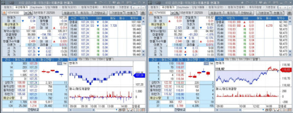 ▲9월만기 국채선물 흐름. 왼쪽은 3년 선물, 오른쪽은 10년 선물 (체크)