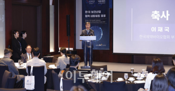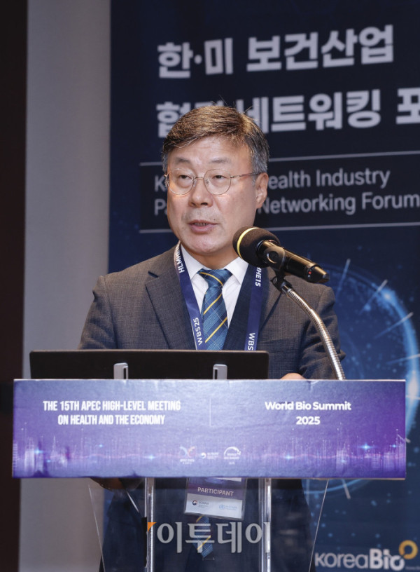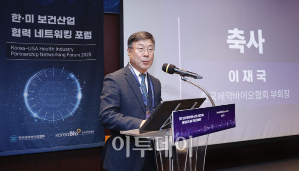 이재국 한국제약바이오협회 부회장이 15일 서울 중구 서울신라호텔에서 열린 한·미 보건산업 협력 네트워킹 포럼에서 축사를 하고 있다. 이투데이는 올해 창간 15주년을 기념해 2025 세계 바이오 서밋 부대행사로 국내외 보건산업계 관계자들과 양국 보건산업 협력 증진과 글로벌 의약품 공급망 협력 강화 방안을 논의하는 '한·미 보건산업 협력 네트워킹 포럼'을 마련했다. 이번 포럼을 통해 국내·외 보건산업 전문가 및 기업 간 교류·협력 방안을 제시하고자 한다. 한편 보건복지부는 이날부터 17일까지 '지속가능한 내일을 위한 모든 사람의 건강보장' 주제의 제15차 APEC 보건과 경제 고위급 회의와 함께 '혁신에서 접근으로 : 모두를 위한 의료혁신' 주제의 2025 세계 바이오 서밋을 진행한다. 조현호 기자 hyunho@