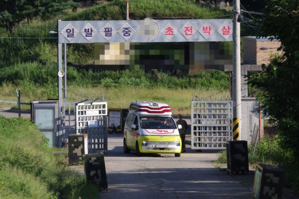 ▲본 사진은 기사와 무관함. 10일 오후 경기도 파주시 육군 모 부대에서 훈련 중 폭발 사고가 일어나 구급차가 위병소를 통과하고 있다. (연합뉴스)