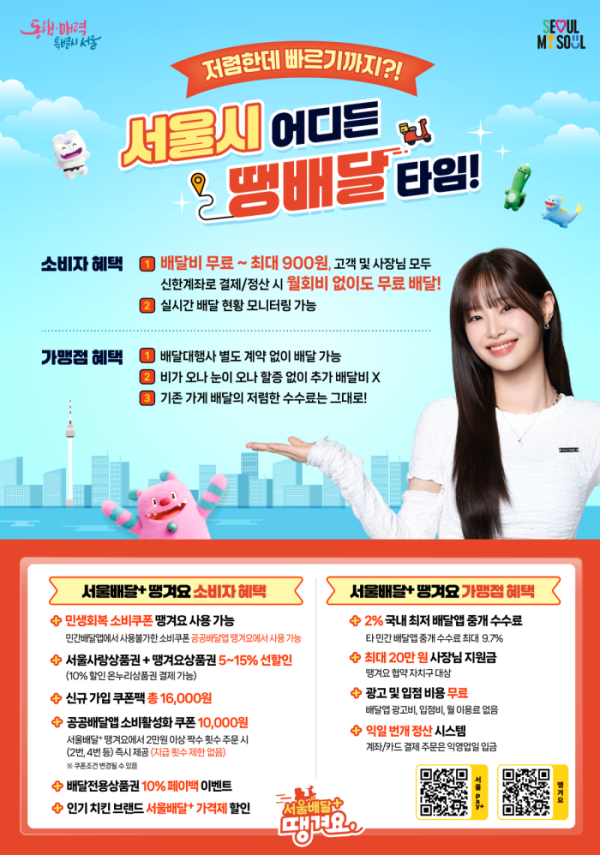 한정훈 서울시 소상공인정책과장은 “땡배달은 사장님의 배달플랫폼 수수료 부담을 줄이는 동시에 시민에게 합리적인 가격과 안정적인 서비스를 제공하는 상생 모델”이라며 “앞으로도 민관 협력을 강화해 사장님과 시민 모두가 실질적인 혜택을 체감할 수 있도록 적극적으로 지원하겠다”고 말했다.
