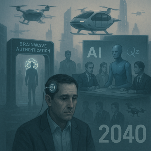 2040년의 일상은 충격적이다. 인간은 더 이상 스스로의 기억조차 온전히 간직하지 못한다. 두뇌 임플란트와 양자 연산 시스템이 삶을 설계하는 시대, 선택과 경험은 기술의 손에 넘어갔다. 서울의 직장인 A씨는 아침에 눈을 뜨기도 전에 뇌 임플란트가 강제 각성 신호를 보낸다. 아침 식사 메뉴는 인공지능(AI)과 양자가 혈당·유전자 정보를 계산해 선택한 식단이다. 아침을 고르는 자유는 이미 사라졌다.