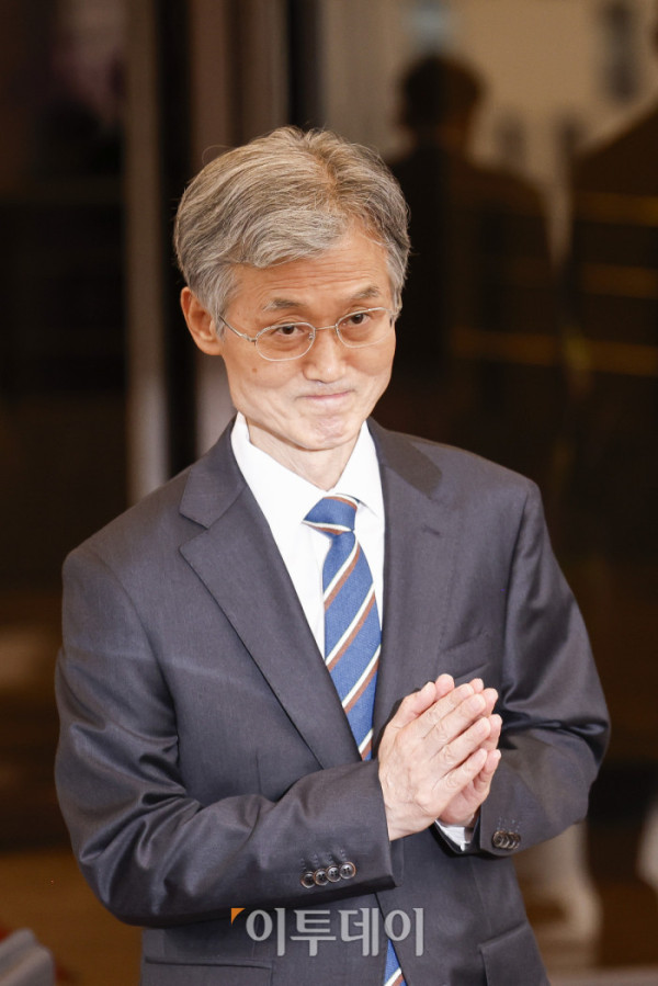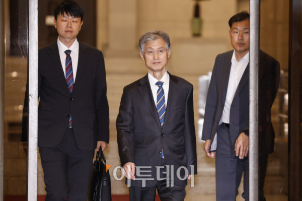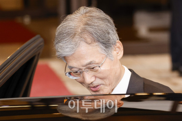 ▲조희대 대법원장이 17일 서울 서초구 대법원 청사를 나서고 있다. 조 대법원장은 이날 한덕수 전 국무총리와 이재명 대통령의 공직선거법 위반 사건 처리를 논의했다는 의혹을 전면 부인했다. 조현호 기자 hyunho@
