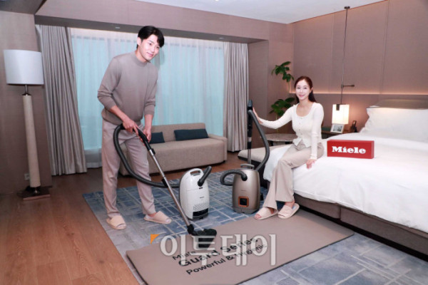 밀레코리아가 17일 서울 강남구 삼성동 웨스틴 서울 파르나스에서 진공청소기 ‘가드(Guard) 청소기’ 론칭 행사를 하고 있다. 밀레코리아에 따르면 가드 청소기는 미세먼지를 99.99% 여과하는 하이클린 퓨어 먼지봉투와 에어클린, 에어클린 플러스, 헤파필터를 탑재해 쾌적한 실내 공기를 제공한다. 또한 자동 닫힘 기능이 있어 먼지봉투를 직접 만지지 않고 교체할 수 있어 위생적이다. 사진제공=밀레코리아