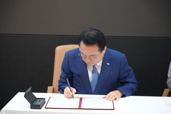 ▲해양진흥공사 안병길 사장이 유진투자증권과의 협약에 서명하고 있다. (사진제공=해양진흥공사)