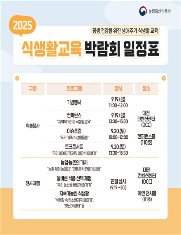 ▲2025 식생활교육 박람회 일정표. (사진제공=농림축산식품부)