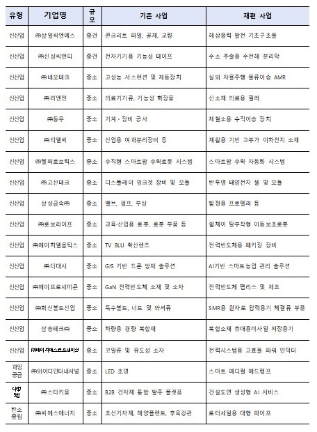 이번에 승인된 기업들은 각자의 전문 기술을 바탕으로 유망 신산업 분야에 진출한다.