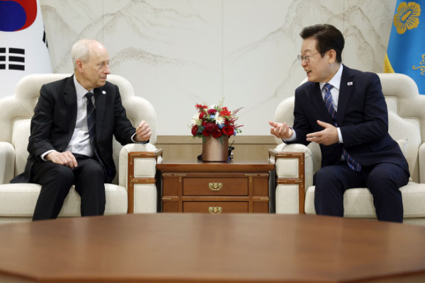 이 대통령은 "상식적이고 그야말로 정의로운 사회라고 하는 게 말로는 쉽지만, 현실에서는 매우 어려운 게 사실"이라며 "세계가 정치적 혼란도 많이 겪고, 특히 극우의 발호 때문에 사회적 안정성도 매우 저해되고 있는데, 대한민국은 어려운 과정을 겪긴 했지만 빛의 혁명을 통해서 정의로운 사회를 향한 그야말로 민주적인 사회를 만들어 나가는 모범이 되지 않았나 그런 자부심도 있다"고 했다.