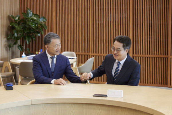 ▲김동연 경기도지사가 18일 박능후 신임 도정자문위원장과 대화하며 공식적인 만남을 가졌다. (경기도)