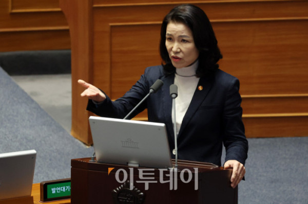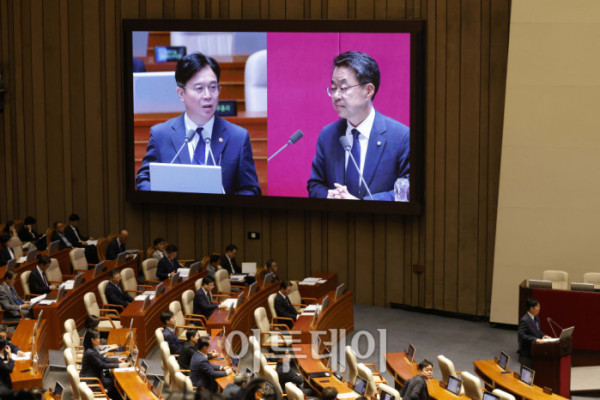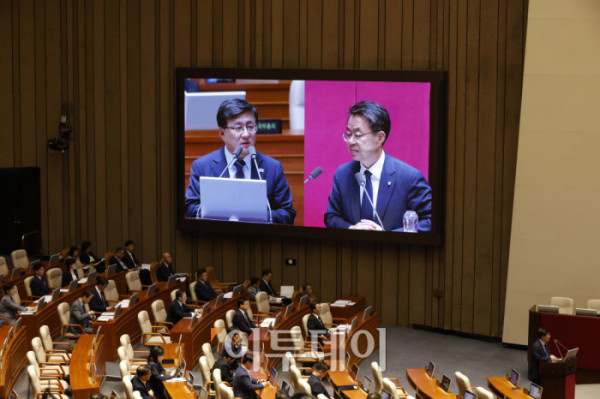 ▲김성환 환경부 장관이 18일 서울 여의도 국회 본회의에서 열린 교육·사회·문화 분야 대정부질문에서 의원 질의에 답변하고 있다. 고이란 기자 photoeran@