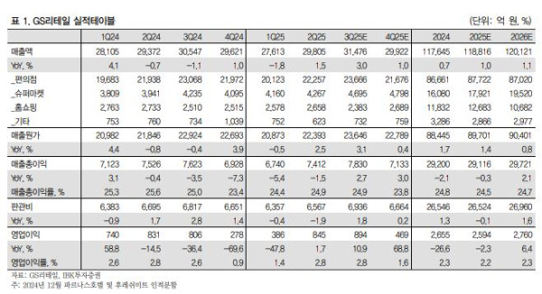 ▲GS리테일 실적 전망. (출처=IBK투자증권)
