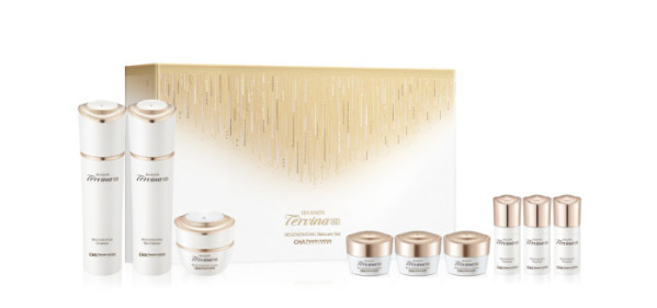 테르비나 AD는 프리미엄 안티에이징 라인으로 세계적인 생명과학 연구 기관 CHA 태반 연구소의 독자적인 과학기술로 개발된 rHPP-8과 재조합 태반 줄기세포 배양액 핵심 성분인 rFPP-5, 테르비나의 새로운 성분(Fibroglu)을 함유해 피부 빛과 에너지를 채워주는 처방이 특징이다.