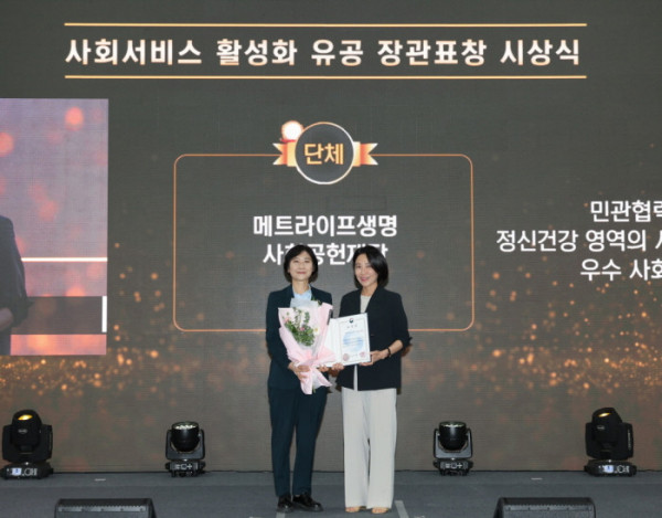 이달 9일 열린 시상식에는 메트라이프생명 사회공헌재단을 포함해 총 7개 단체에 대한 사회서비스 활성화 유공 보건복지부 장관표창 시상이 진행됐다. 사회서비스란 취약계층 지원을 넘어, 온 국민의 삶 전반을 치유하고 개선하는 다양한 서비스를 포괄한다.