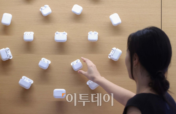 ▲애플의 신제품 정식 판매가 시작되는 19일 서울 중구 명동 애플스토어에 에어팟 프로3가 전시돼 있다. 이날 애플은 가장 얇은 아이폰 에어를 비롯해 아이폰17, 아이폰17 프로, 아이폰17 프로맥스와 새로운 애플 워치 시리즈인 애플워치11, 애플워치 울트라3, 애플워치 SE3, 에어팟 프로3 등의 신제품을 정식 발매한다. 사진제공=애플코리아