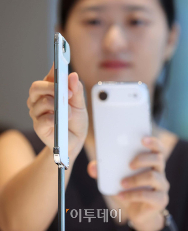 ▲애플의 신제품 정식 판매가 시작되는 19일 서울 중구 명동 애플스토어에서 시민이 제품을 체험하고 있다. 이날 애플은 가장 얇은 아이폰 에어를 비롯해 아이폰17, 아이폰17 프로, 아이폰17 프로맥스와 새로운 애플 워치 시리즈인 애플워치11, 애플워치 울트라3, 애플워치 SE3, 에어팟 프로3 등의 신제품을 정식 발매한다. 사진제공=애플코리아
