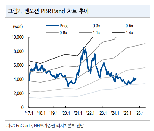 이어 "팬오션 개별적으로는 LNG선, 탱커 부문 이익 증가로 내년 영업이익이 늘어날 것"이라며 "현재 주가순자산비율(PBR)인 0.4배는 글로벌 벌크선사(평균 0.86배) 대비 밸류에이션 절반 수준에 불과한 상태로, 여전히 이익 체력 개선은 미반영된 상태기 때문에 재평가를 위해서 배당성향 확대나 자사주 매입 소각의 주주환원 필요하다"라고 진단했다.