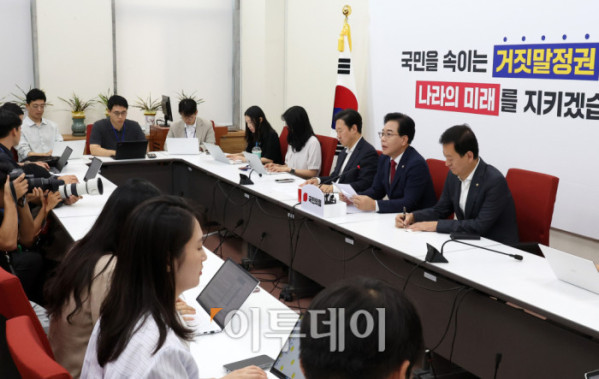 송언석 국민의힘 원내대표가 23일 서울 여의도 국회에서 취임 100일 기자회견을 하고 있다. 고이란 기자 photoeran@