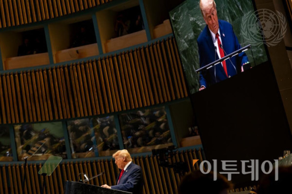 23일(현지시간) 블룸버그통신에 따르면 세계 각국 정상급 지도자들이 모여 국제사회 현안을 논의하는 제80차 유엔총회 고위급 정상회의가 미국 뉴욕 유엔본부에서 개막한 가운데 트럼프 대통령이 2기 행정부 출범 이후 처음으로 유엔 연설에 나섰다. 연설에서 한국은 "무역합의국"으로 언급한 반면, 북한에 대해서는 전혀 거론하지 않아 배경에 관심이 쏠린다.
