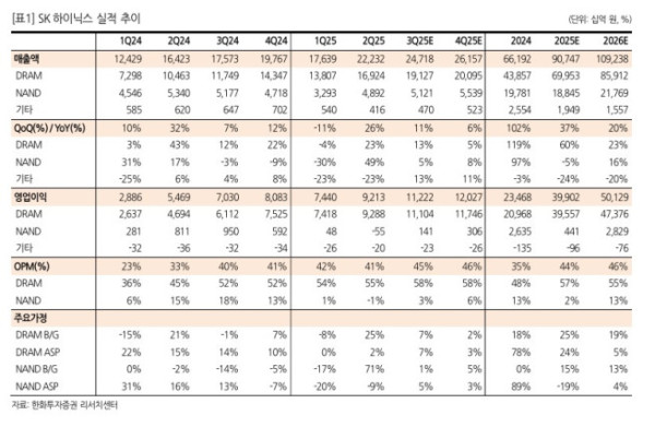 김광진 한화투자증권 연구원은 "공급이 타이트하게 유지된 상황에서 예상보다 강한 인공지능(AI)발 수요가 지속되면서 디램 출하 증가율은 7% 수준으로 당초 가이던스를 웃돌 것"이라며 "낸드도 하드디스크드라이브(HDD) 공급 부족에 기인한 쿼드레벨셀 솔리드스테이트드라이브(QLC SSD) 반사 수혜 효과로 출하량은 기대치에 부합할 것"이라고 전망했다.