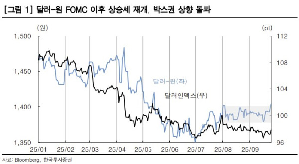 최근 원화 약세는 대내외 요인이 겹치며 심화되는 양상이다. 9월 연방공개시장위원회(FOMC) 이후 원·달러 환율은 상승세를 이어가며 전일 야간 거래에서 1405원까지 치솟았다.