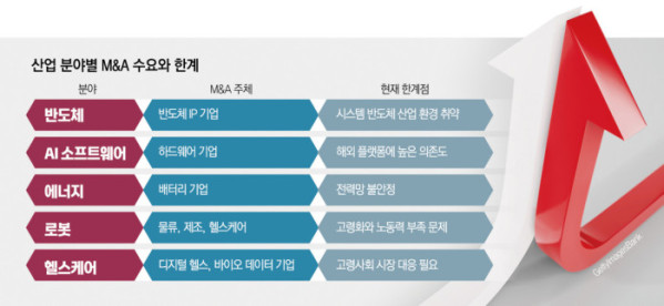 한국 기업들의 미래 경쟁력은 어떠한 빅딜을 성사시키느냐에 달려 있다. 반도체·인공지능(AI)·배터리·에너지 전환·로봇·헬스케어 등 신성장 산업은 이미 세계 각국에서 핵심 격전지로 떠올랐다. 시장 진출 시점이나 핵심 기술 확보 등 목적에 따라, 각 산업군별로 인수합병(M&A)이 한층 더 활발하게 전개될 것으로 전망된다.