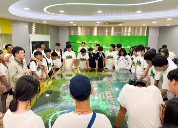 ▲우리가 그린히어로 중학생 활동가들이 LG화학 대산공장을 탐방하여 공장 소개를 듣고 있다. (사진제공=LG화학)