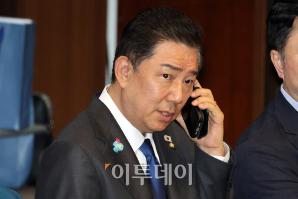 ▲김병기 더불어민주당 원내대표가 25일 서울 여의도 국회 본회의에서 통화를 하고 있다. 고이란 기자 photoeran@