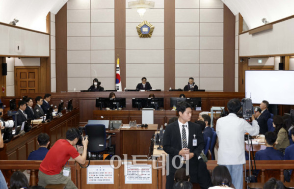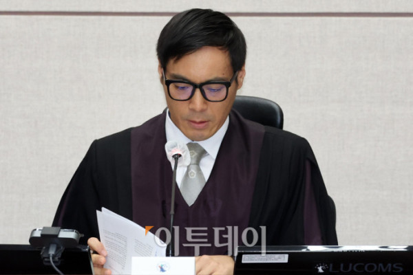 ▲윤석열 전 대통령의 특수공무집행방해, 직권남용 권리행사방해 등 혐의 사건 첫 공판이 열린 26일 서울 서초구 서울중앙지법에서 백대현 부장판사가 발언하고 있다. 고이란 기자 photoeran@