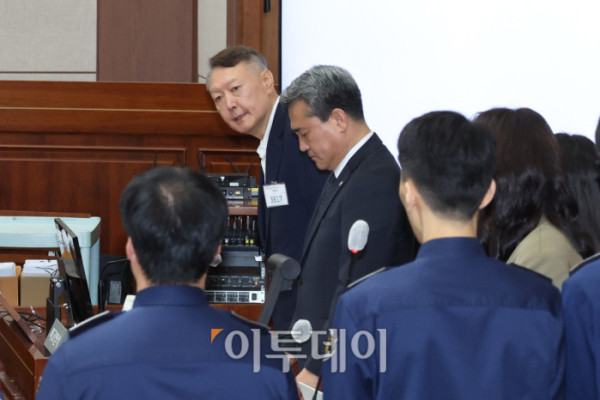 ▲윤석열 전 대통령이 26일 서울 서초구 서울중앙지법에서 열린 특수공무집행방해, 직권남용 권리행사방해 등 혐의 사건 첫 공판에 출석하고 있다. 형사 법정에서 윤 전 대통령의 모습이 공개된 것은 지난 4월 내란 사건 재판 이후 약 5개월 만이다. 고이란 기자 photoeran@