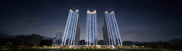 단지 외관은 사선으로 디자인한 옥탑 구조물을 바탕으로 거대한 첨탑을 연상시키는 독창적인 건축미를 표현했고 문주부터 최상층까지 이어지는 수직의 입면 프레임은 하늘로 향해 뻗어 나가는 역동적인 흐름을 연출해 웅장함을 한층 끌어올렸다.