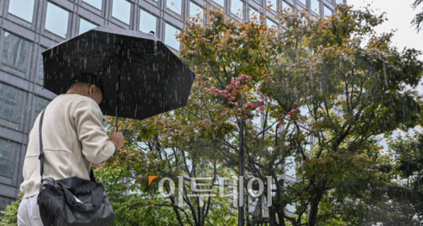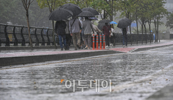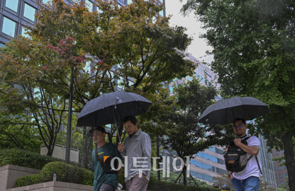 ▲전국 대부분 지역에 비가 내린 28일 서울 중구 청계광장 인근에서 우산을 쓴 시민들이 비를 피해 발걸음을 재촉하고 있다. 기상청은 오전부터 낮 사이 수도권과 충남 북부를 중심으로 시간당 20mm 안팎의 강한 비가 집중되겠다고 예보했다. 비는 늦은 오후 대부분 그치겠지만, 전남 남부와 경남 서부는 늦은 오후까지 이어질 것으로 전망된다. 예상 강수량은 서울·인천·경기·충남 북부·제주도 10∼60㎜, 강원 내륙과 산지·대전·세종·충남 남부·충북·전북·광주·전남 10∼40㎜ 등이다. 조현호 기자 hyunho@