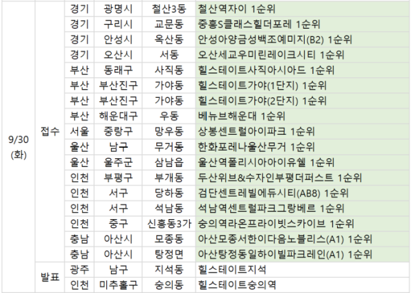 또 광주 남구 '힐스테이트지석'과 인천 미추홀구 '힐스테이트숭의역'은 이날 당첨자를 발표한다.