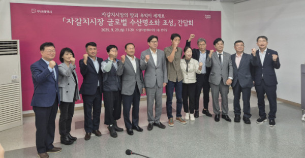 부산시는 29일 자갈치현대화시장에서 '글로벌 수산명소화 조성 간담회'를 열고 자갈치시장 활성화 방안을 논의했다. 이 자리에는 박형준 부산시장, 최도석 부산시의회 해양도시안전위원장, 강주택 시의원, 자갈치시장 상인회 대표, 부산시설공단 이사장 등이 참석했다.