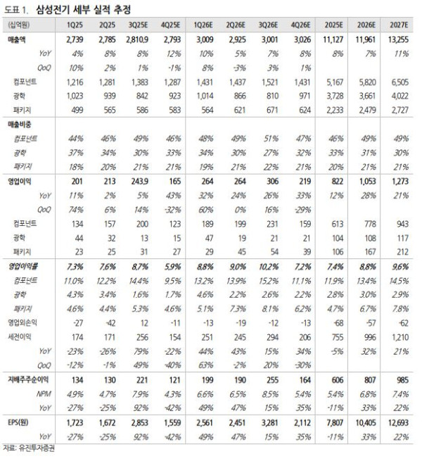 IT 수요의 계절적 성수기 진입과 인공지능(AI) 서버 및 전장용 MLCC의 지속적인 수요 확대에 기반해 컴포턴트 사업부 매출액은 전기 대비 약 8% 증가한 1조3830억 원의 매출액을 기록할 것으로 예상했다.