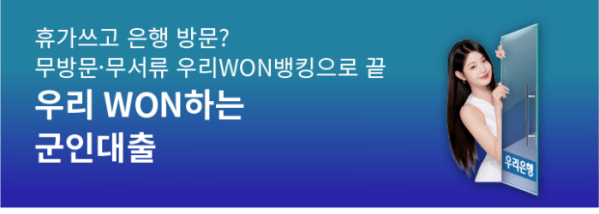 이번 상품은 비대면 전용 상품으로 우리WON뱅킹을 통해 신청할 수 있다. 재직기간 3개월 이상 연소득 3000만원 이상인 직업군인(육·해군/해병대) 및 군무원이다.