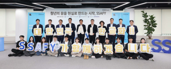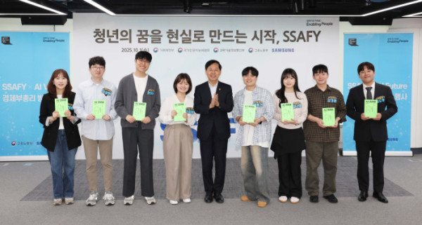 ▲구윤철 부총리 겸 기획재정부 장관이 1일 서울 강남구 삼성 청년SW·AI아카데미(SSAFY)를 찾아 교육생들과 기념촬영을 하고 있다. 신태현 기자 holjjak@