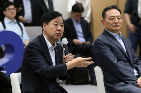 ▲구윤철 부총리 겸 기획재정부 장관이 1일 서울 강남구 삼성 청년SW·AI아카데미(SSAFY)를 찾아 교육생들과 간담회를 갖고 있다. 신태현 기자 holjjak@