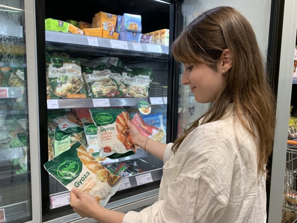 ▲독일 프랑크푸르트에 위치한 글로버스 매장에서 소비자가 비비고 만두 제품을 살펴보고 있는 모습 (CJ제일제당 제공)