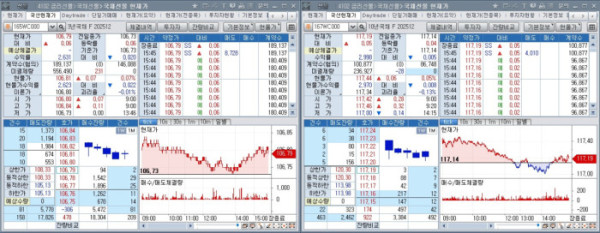 외국인은 3선과 10선 순매도를 이틀째 이어갔다. 3선은 5475계약을, 10선은 1만1648계약을 각각 순매도했다. 특히 10선 순매도 규모는 지난달 26일 1만2290계약 순매도 이후 최대 수준이다. 반면, 은행은 3선과 10선을 이틀연속 순매수하는 모습을 보였다. 각각 순매수규모는 4419계약과 2658계약이었다. 금융투자는 10선에서 7134계약을 순매수해 전달 26일 7814계약 순매수이래 가장 큰 폭의 매수세를 보였다.
