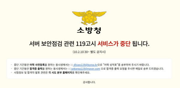 이번 사고로 지난해 10월 3일까지 사이트에 가입한 회원 5만93명의 아이디와 성명, 생년월일, 휴대전화 번호, 이메일 등의 개인정보가 유출됐다. 소방청은 사고 인지 후 이달 2일 오후 10시 30분부로 119고시 사이트를 폐쇄하고, 서비스를 이용할 수 있는 대체 방법을 안내했다.