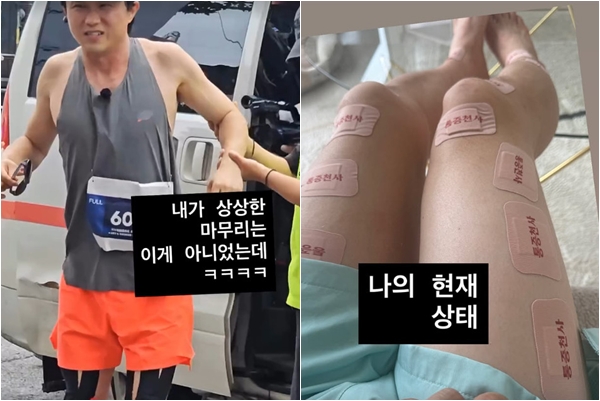 특히 박성광은 마라톤을 중단하고 구급차를 통해 이동하는 모습이 담긴 영상도 공개했다. 제대로 걷지도 못한 채 부축을 받으며 걷는 자신의 모습에 박성광은 “내가 상상한 마무리는 이에 아니었다”라고 쓰게 웃었다.