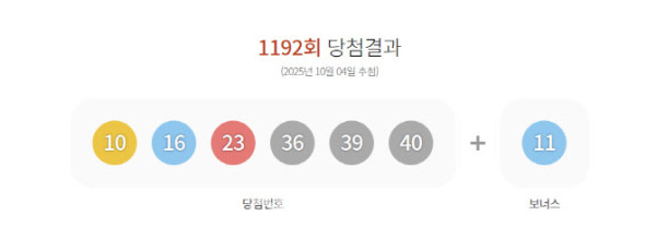 동행복권에 따르면, 이번 회차 1등 당첨 번호는 10, 16, 23, 36, 39, 40이며, 보너스 번호는 11이다. 총 29명의 1등 당첨자가 발생했으며, 1인당 당첨금은 10억 7,954만 6,587원에 달한다.