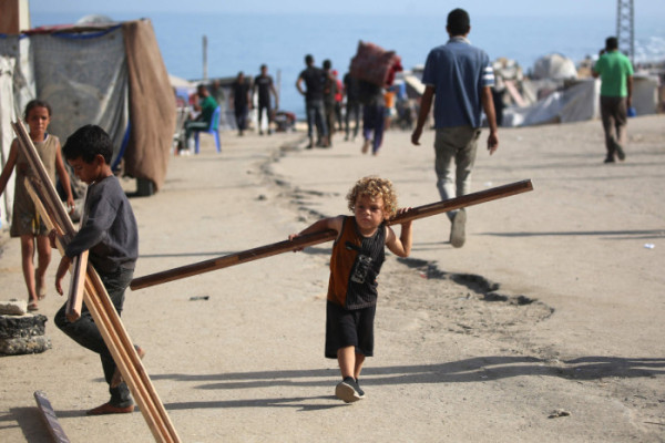 ▲한 팔레스타인 소년이 난민캠프에서 나무를 옮기고 있다. 이스라엘은 도널드 트럼프 미국 대통령이 즉각적인 전투 중단을 촉구했음에도 4일(현지시간) 가자지구에서 여전히 작전 중이라고 밝히며 주민들에게 복귀하지 말라고 경고했다. (가자지구/AFP연합뉴스)