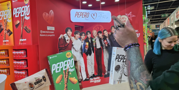 국내 기업들의 이색 부스 경쟁도 치열했다. 식품사들은 바이어들의 눈길을 끌기 위해 ‘케데헌’과 BTS 진(오뚜기, 동원), 스트레이키즈(롯데웰푸드) 등 자사 모델과 IP를 총동원했다. 총 3가지 제품을 전시한 롯데칠성음료는 방향에 따라 전혀 다른 감각적인 콘셉트로 부스를 구현해 눈길을 끌었다. 소주 부스에는 소주의 상징인 녹색병(처음처럼)과 투명병(새로)이 벽면을 가득 채웠고 새로 캐릭터 ‘새로구미’ 애니메이션을 무한송출해 새로 특유의 B급 세계관을 알렸다. 다른 각도에서는 우유의 부드러움을 반영한 ‘밀키스’와 건강음료임을 강조한 ‘알로에베라’도 장점을 드러냈다.