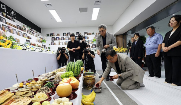 명절이어서 가족과 만나야 하지만, 만날 수 없게 된 유가족들을 위해 유가족협의회가 오후 2시 공항 1층 희생자 분향소에서 합동 차례를 마련했다.