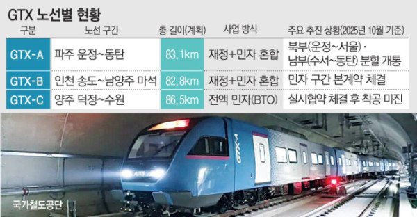 한편 인천 송도에서부터 남양주 마석까지 이어지는 총 길이 82.8km의 GTX-B 노선 현재 약 1조1000억 원 규모의 시공 계약이 체결, 착공이 본격화돼 사업이 진행 중이다.