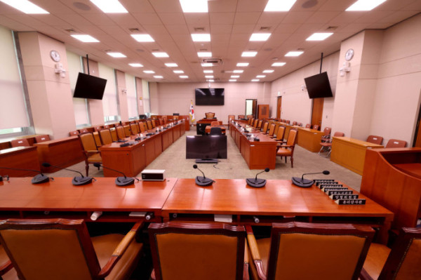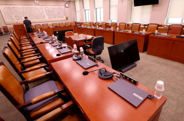 ▲이재명 정부 첫 국정감사를 하루 앞둔 12일 서울 여의도 국회 법제사법위원회 회의실에 피감기관장들의 명패가 놓여 있다. 비상계엄으로 막을 내린 전임 윤석열 정부와 넉 달 동안 국정을 운영한 현 정부가 모두 대상인 만큼, 여야는 어느 때보다 거센 공방을 벌일 것으로 예상된다. 신태현 기자 holjjak@